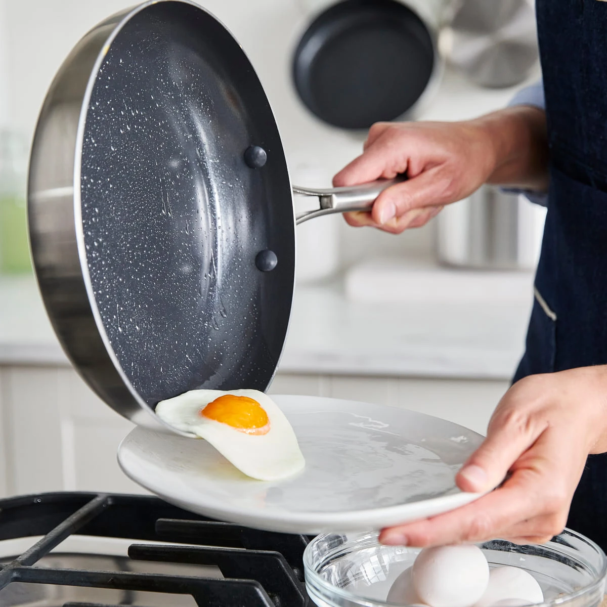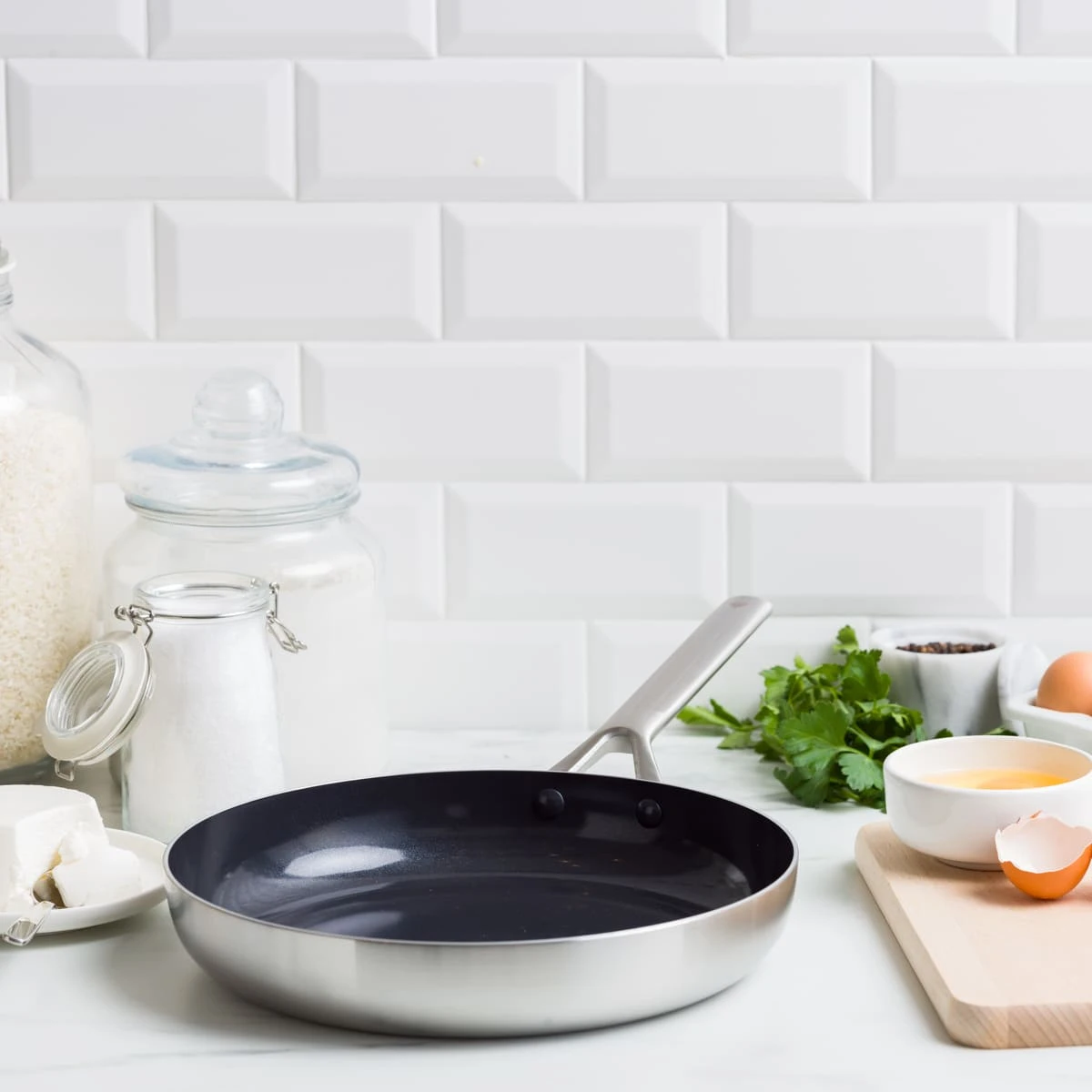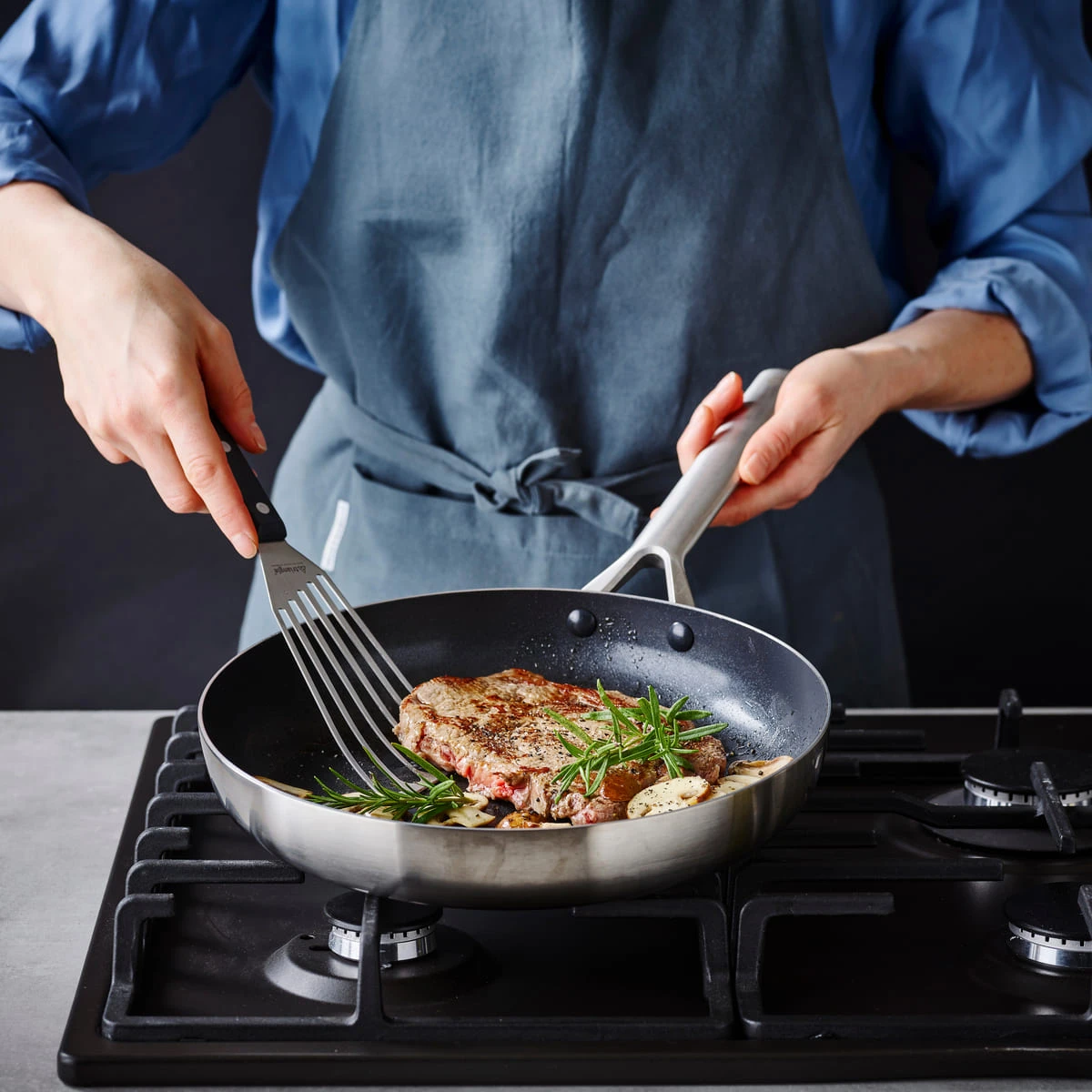 Perfect for crafting unlimited, hassle-free meals, this 28cm Frypan takes your cooking experience from to the next level. The 3-layer stainless steel construction and induction ready design makes this pan suitable for any kitchen and holds up for years of use.