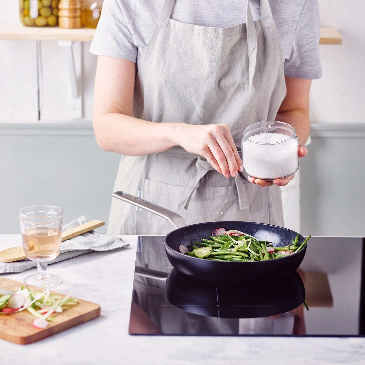 Itโs healthy, performs incredible and itโs beyond beautiful! Evolution is a real showstopper: a sleek jet black design, matte stainless steel handles and a sparkly non-stick interior infused with diamonds. Absolutely stunning! This collection features our greatest innovations from the past 15 years: our state-of-the-art PFAS-free Thermolonโข ceramic non-stick coating enhanced with diamonds, our unique Balance Pro base technology, our Magnetoโข induction technology, our Scratch Guardโข technology for extreme durability and an XL cooking surface. Another unique feature: the detachable handle, which makes this range easy to recycle. Last but not least: the collection is made with recycled aluminium. Because we care about our planet.