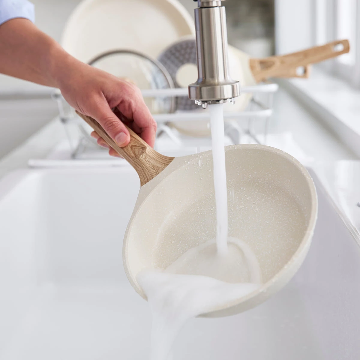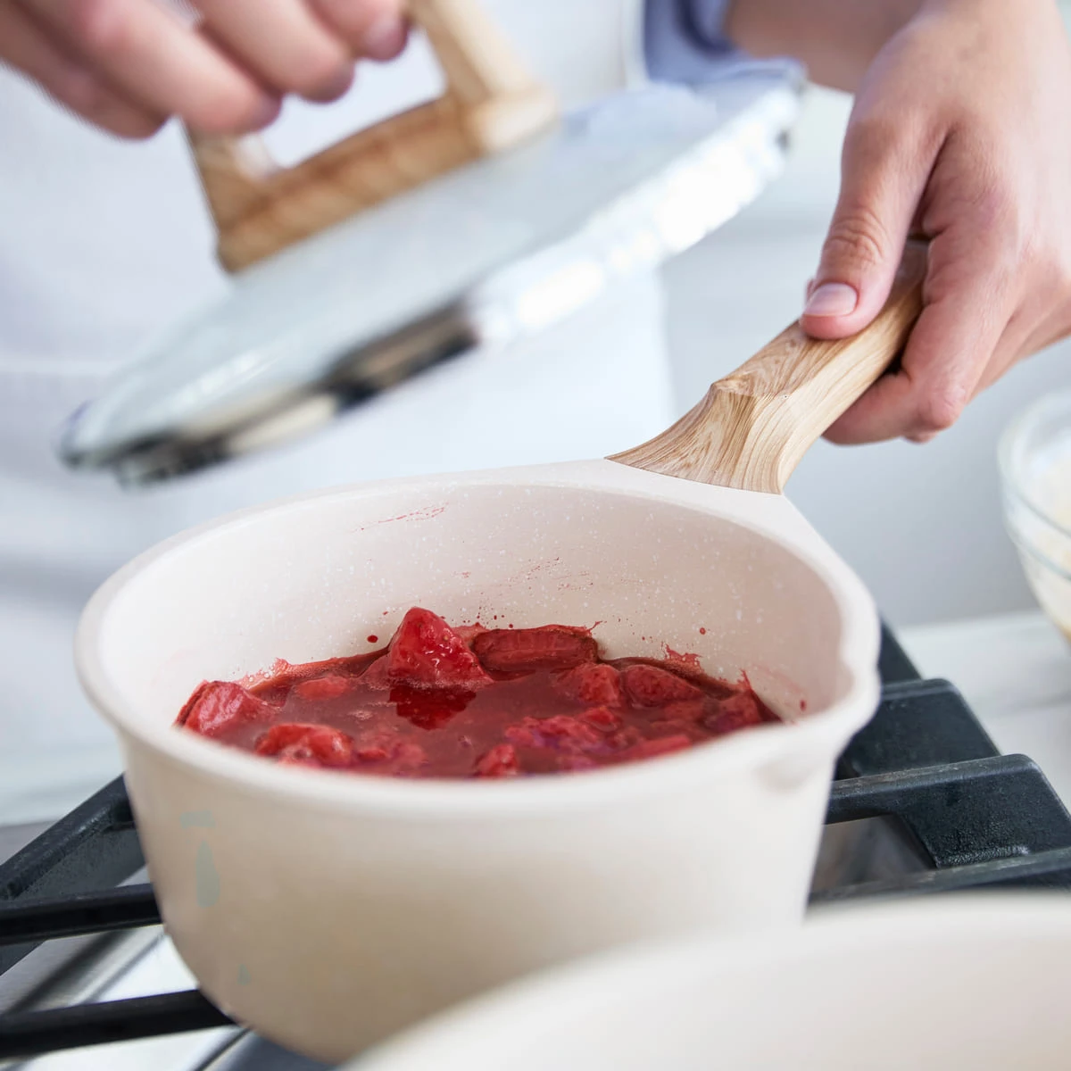 With our signature PFAS-free ceramic non-stick coating, sturdy die-cast aluminium bodies, and stay-cool, wood-print handles, cooking with this collection is a breeze. Designed for incredible versatility, these pans feature an induction base that delivers uniform heat distribution on all stovetops: induction, electric or gas. The vintage wood-print handles keep you comfortable while you cook while adding a timeless style to your space. Simply wipe messes away thanks to our easy-release ceramic non-stick coating or toss these pans in the dishwasher for even easier cleaning.
