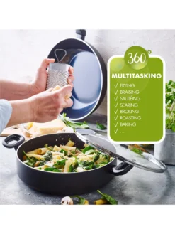 This 24 cm frying pan from the Cambridge collection by GreenPan takes advantage of a glossy exterior that makes it perfect for the contemporary kitchen.