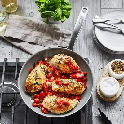 - Oven and broiler safe up to 600°F, safe for all stovetops, except induction