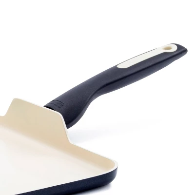 More than just their good looks, every piece in the Rio collection is built to be a fixture in your kitchen. Featuring GreenPan’s signature healthy ceramic nonstick coating, it’s reinforced with diamonds so you can simmer, braise, and sear with ease. The quick-heating aluminum bodies are extra-durable and free of PFAS, PFOA, lead, and cadmium, too. No matter what you’ve got on the menu, this 11” square griddle has your stovetop covered with a warp-free base and a stay-cool Bakelite handle for a secure grip.