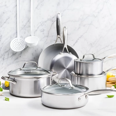 - Stay-cool riveted stainless steel handles give you extra stability and make oven transfers a breeze