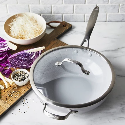 - Tempered glass lids (oven safe up to 425°F) let you keep an eye on things without losing steam