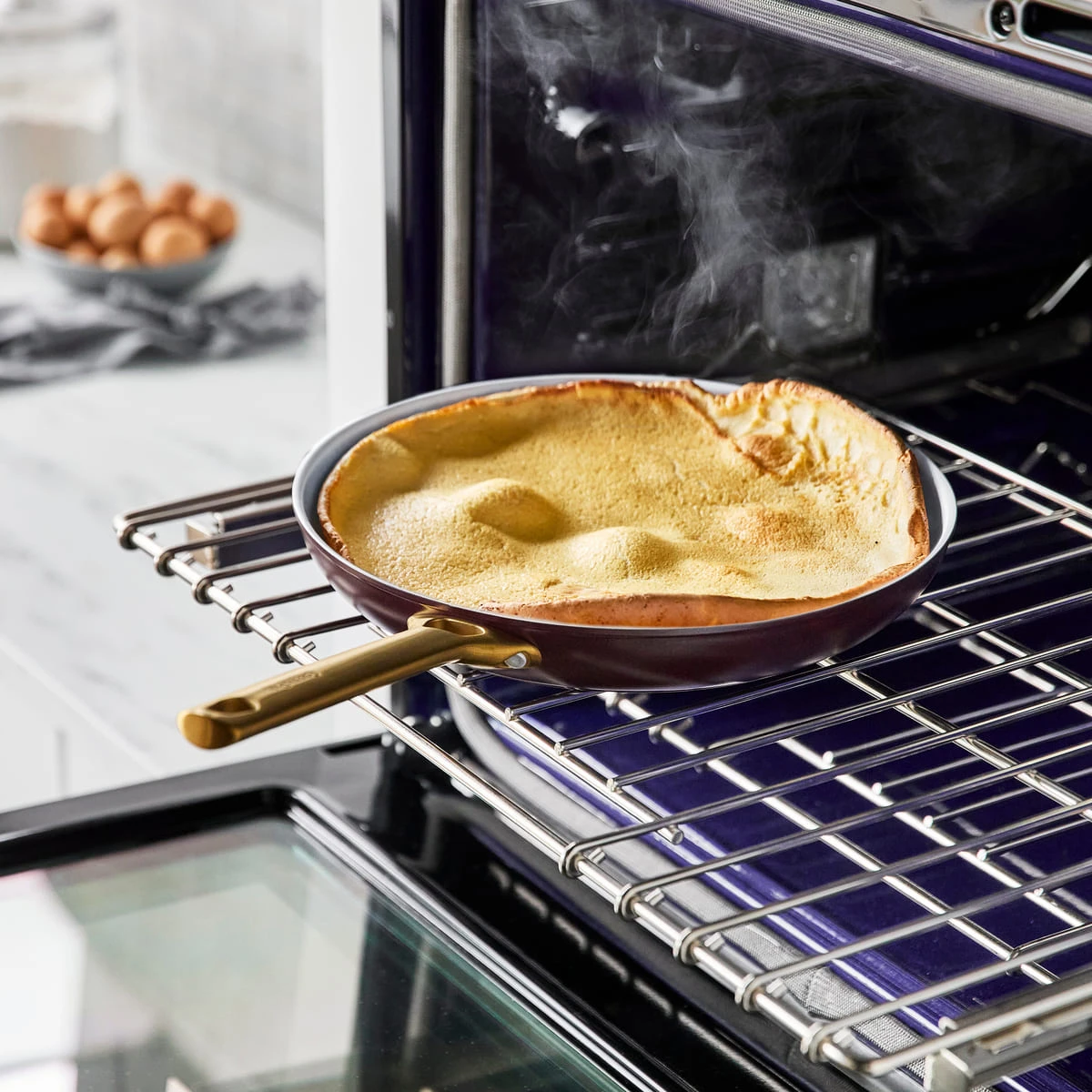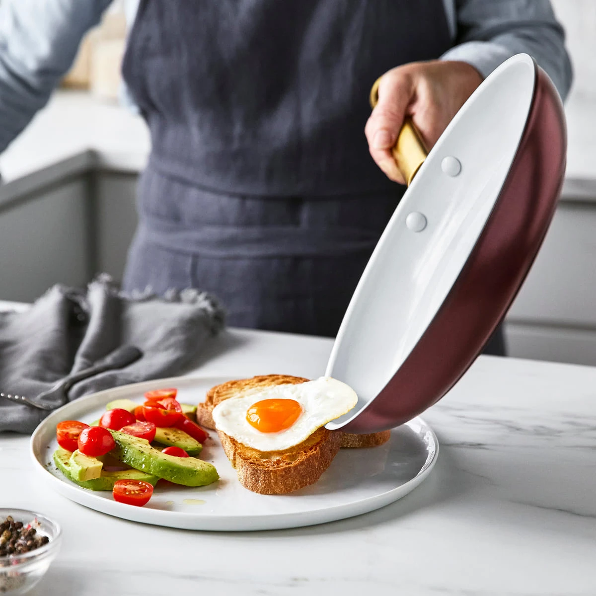 In an eye candy shade of chocolate truffle that will warm up any kitchen, this frypan set from our Padova collection is more than its looks: duo forged hard anodised aluminium construction makes them extra tough and scratch-resistant while also promoting even heat distribution. Each piece features our Thermolonâ„¢ healthy ceramic non-stick coating, which is reinforced with diamonds to make it ultra-durable and heat responsive (all free of PFAS, PFOA, lead, and cadmium). With a set that’s made to cover everything, the meal possibilities are endless – flavourful frittatas, stir fries, and perfectly seared seafood are just the start.