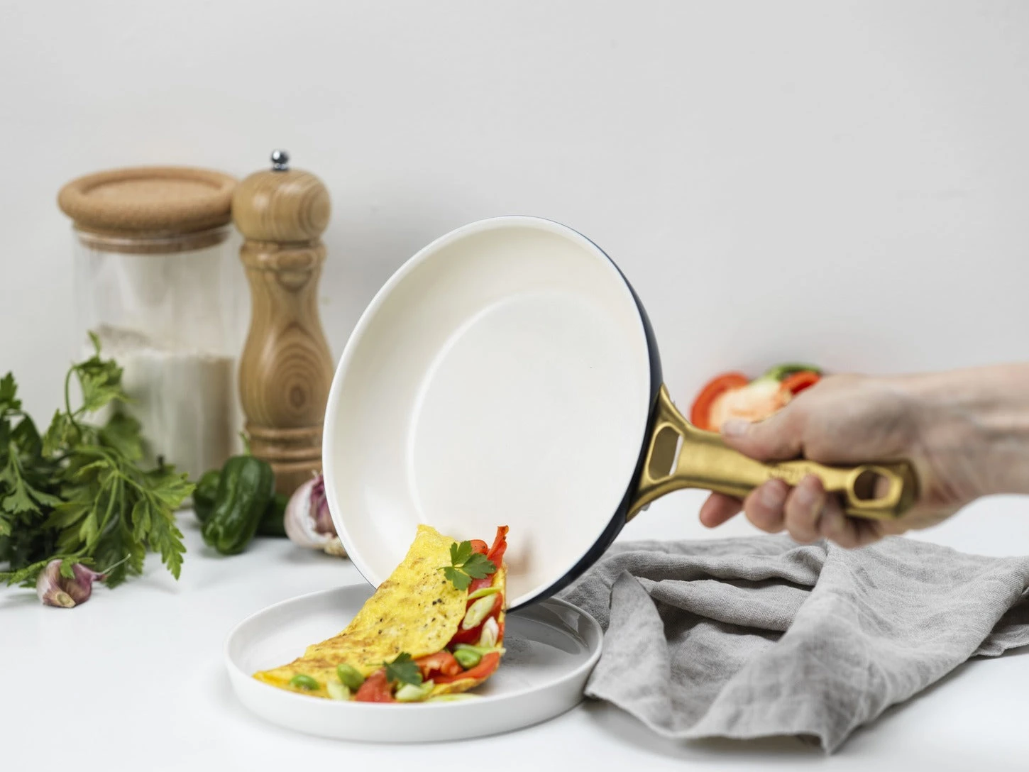 In a sophisticated dark blue shade that will complement any kitchen, this set from our Padova collection is more than its looks: the duo forged hard anodised aluminium construction makes them extra tough and scratch-resistant while also promoting even heat distribution. Each piece features our Thermolon healthy ceramic non-stick coating, which is reinforced with diamonds to make it ultra-durable and heat responsive (all free of PFAS, PFOA, lead, and cadmium). With a set that’s made to cover everything, the meal possibilities are endless – flavourful frittatas, stir fries, and perfectly seared seafood are just the start.