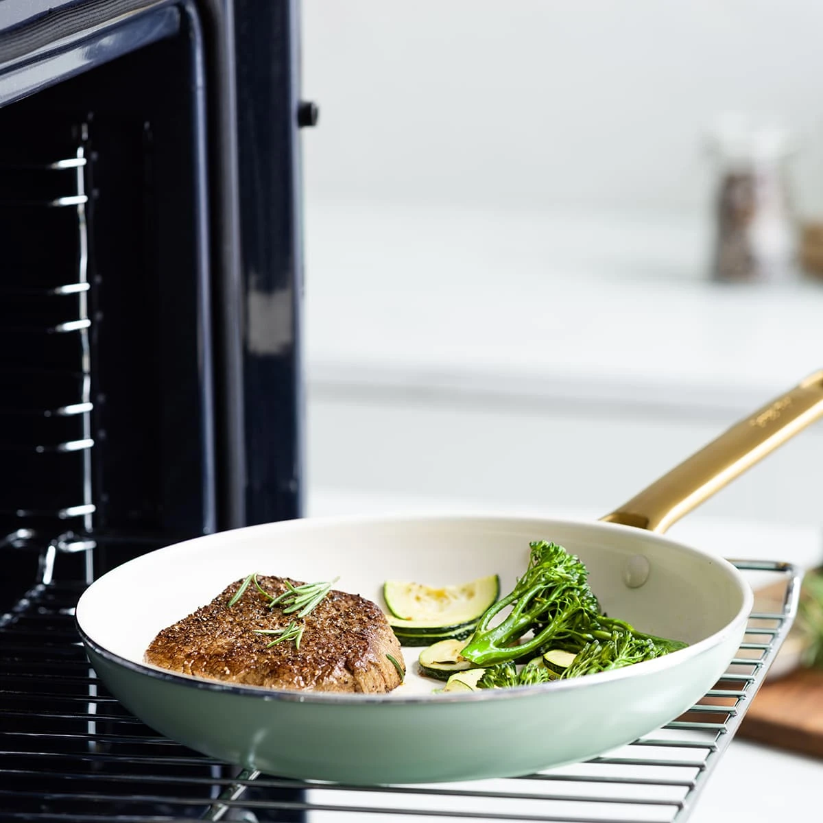 In an eye candy shade of pastel green that will complement any kitchen, this set from our Padova collection is more than its looks: duo forged hard anodized aluminum construction makes them extra tough and scratch-resistant while also promoting even heat distribution. Each piece features our Thermolonâ„¢ healthy ceramic nonstick coating, which is reinforced with diamonds to make it ultra-durable and heat responsive (all free of PFAS, PFOA, lead, and cadmium). With a set that’s made to cover everything, the meal possibilities are endless – flavourful frittatas, stir fries, and perfectly seared seafood are just the start.