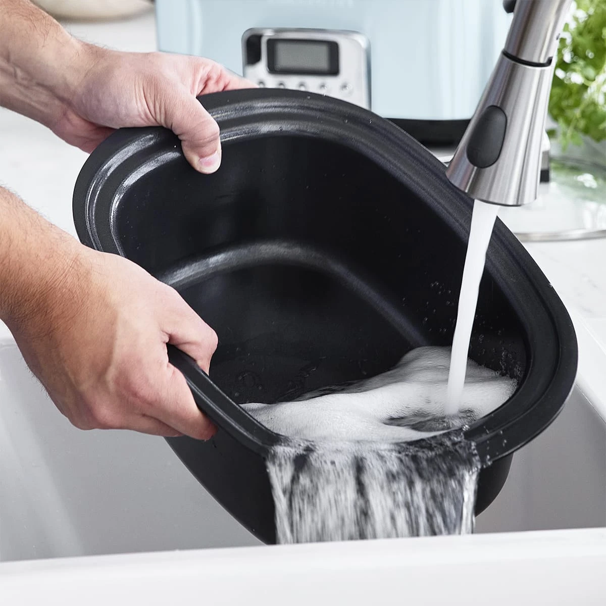 Flavour doesn’t happen in an instant. Create tasty dishes and family-sized meals with massive flavour—our slow cooker creates mouth-watering tastes with the press of a button. Sear your food to start, then cook it low and slow to draw out maximum flavour. Slow Cook, Roast, Brown/Sauté, and Steam with the easy-to-use presets! Plus, the large LCD screen makes finding your setting simple while the striking body is a countertop stunner. Take your time while cooking, then clean up quickly with Thermolon™ Volt, a healthy ceramic non-stick coating specially designed for kitchen appliances.