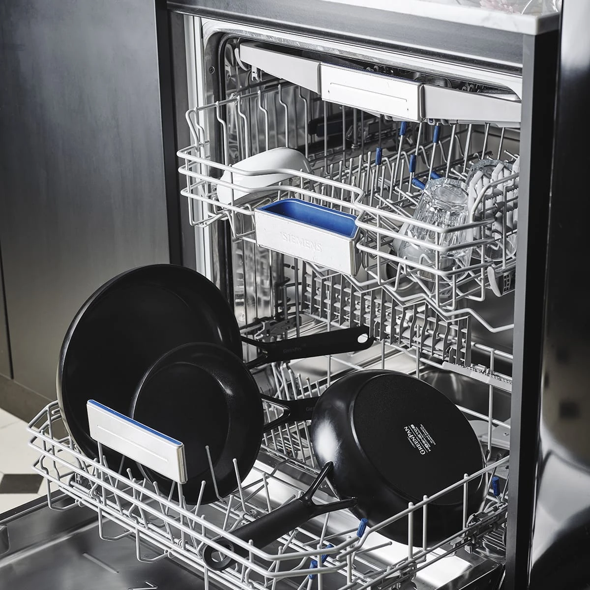 A lot of thought went in these pans. The handles stay cool thanks to a rivetless v-shaped design, which allows these pans to store and stack easily, creating up to 30% more cabinet space. Crafted from hard anodised aluminium and finished with a Magneto base, these pans are extra tough and produce incredible results all on stovetops.